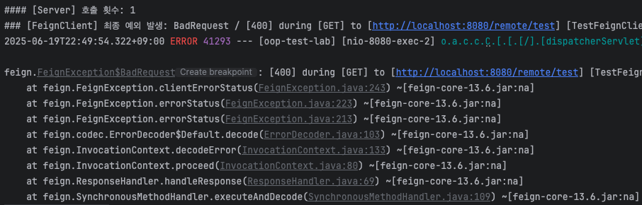 System.out.println("### [FeignClient] 최종 예외 발생: " + e.getClass().getSimpleName() + " / " + e.getMessage());