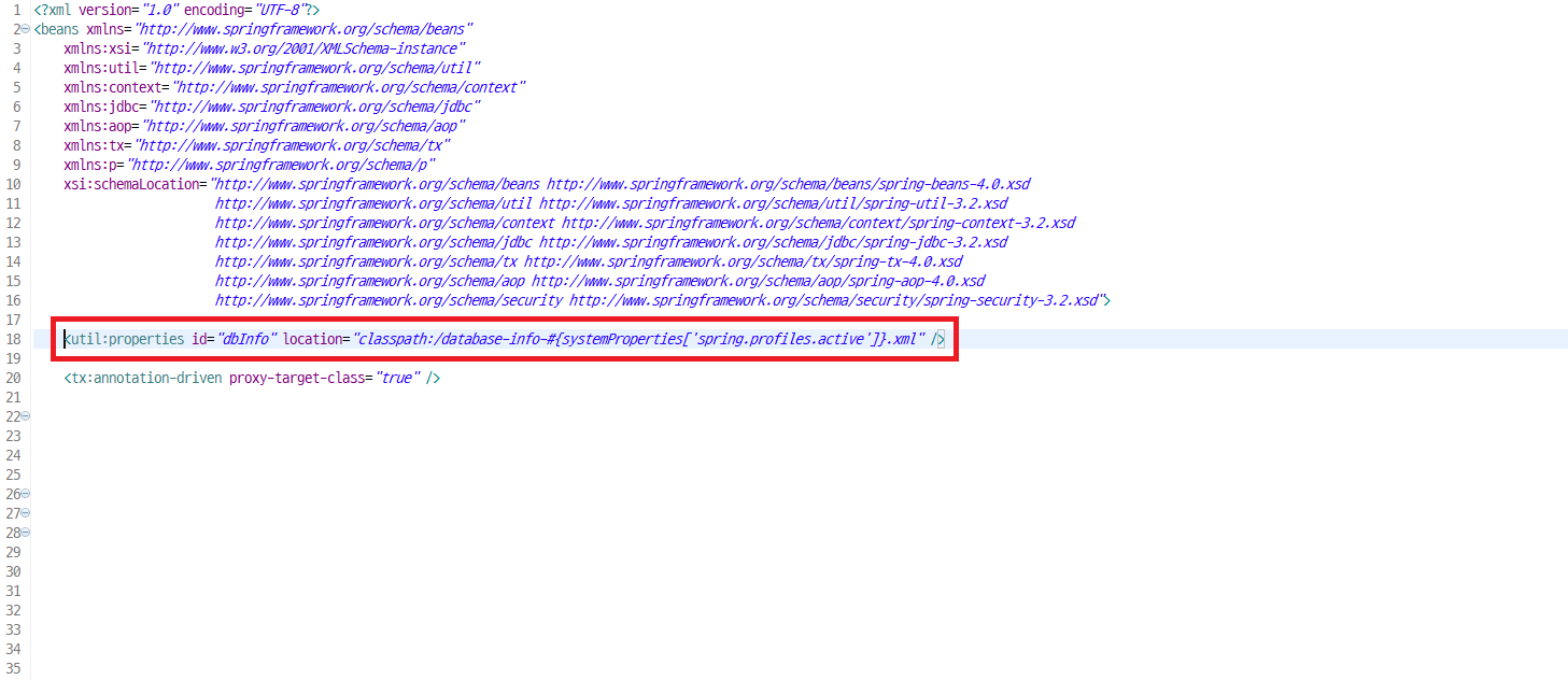 👉 context-datasource.xml 파일의 classpath 부분을 #{systemProperties['spring.profiles.active']}로 변경