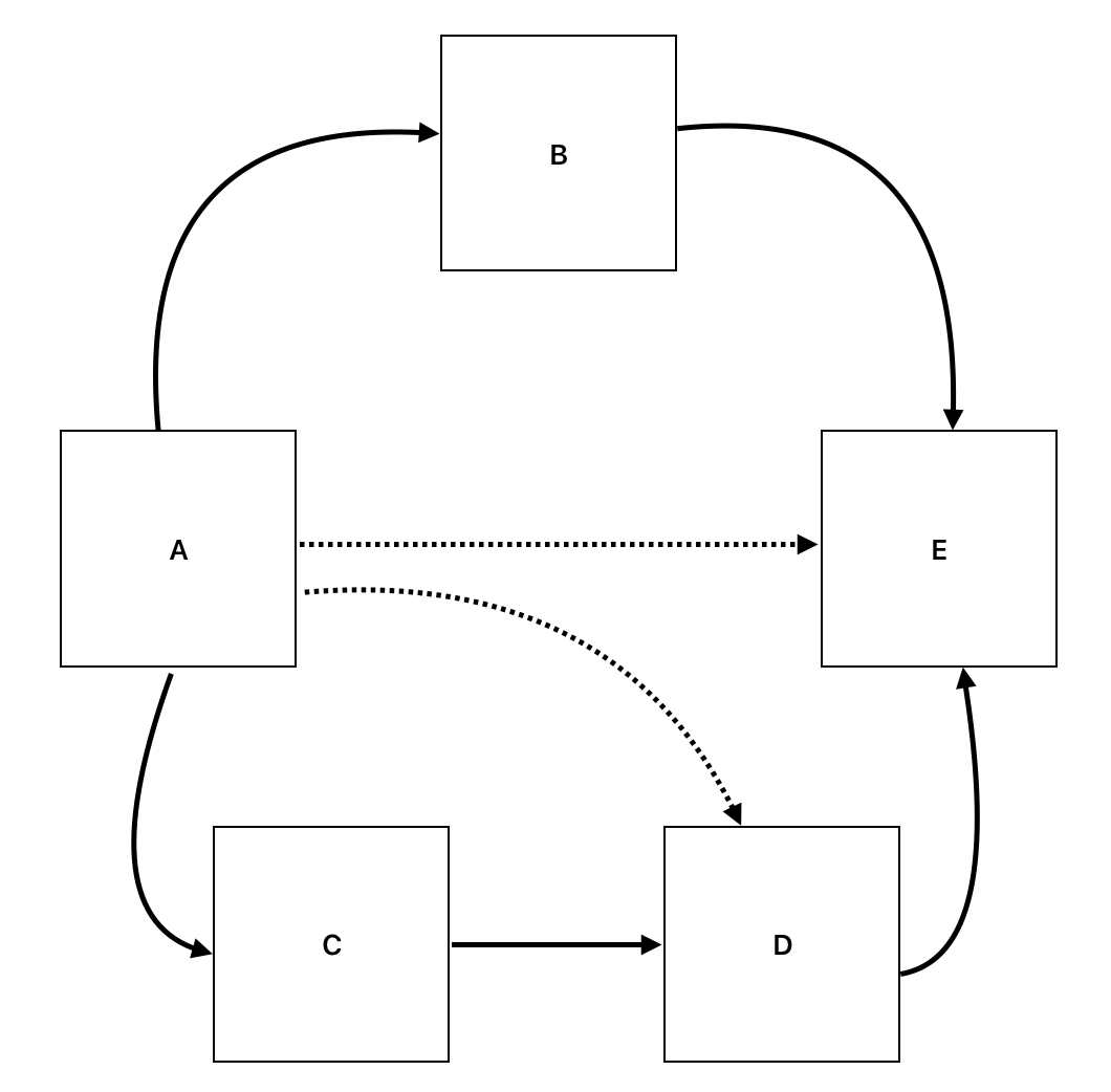 컴포넌트 A는 여러 컴포넌트에 의존하는 반면, 컴포넌트 E는 의존하는 것이 전혀 없다.