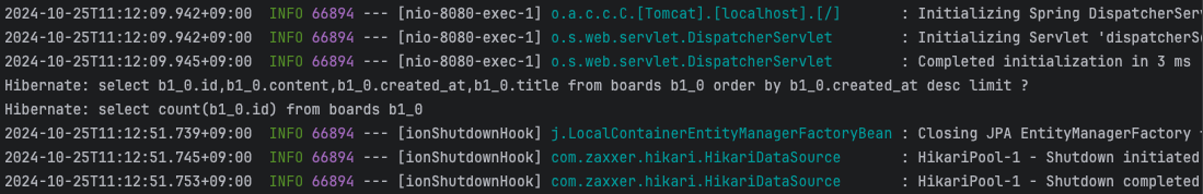 데이터베이스 생성 후 Spring Boot를 구동하여 엔티티 정보가 데이터베이스에 반영되었는지 확인해주자!