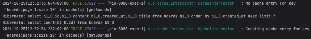 그럼 Cache Aside 전략으로 Caching이 잘 적용되었는지 로그도 살펴 보자.