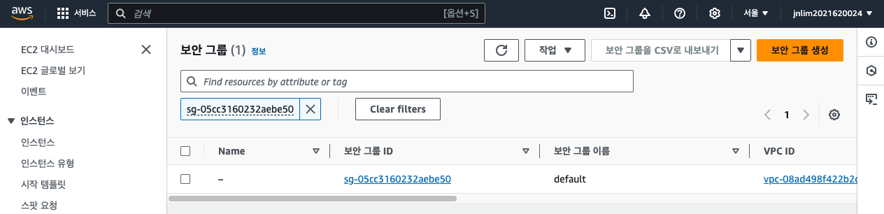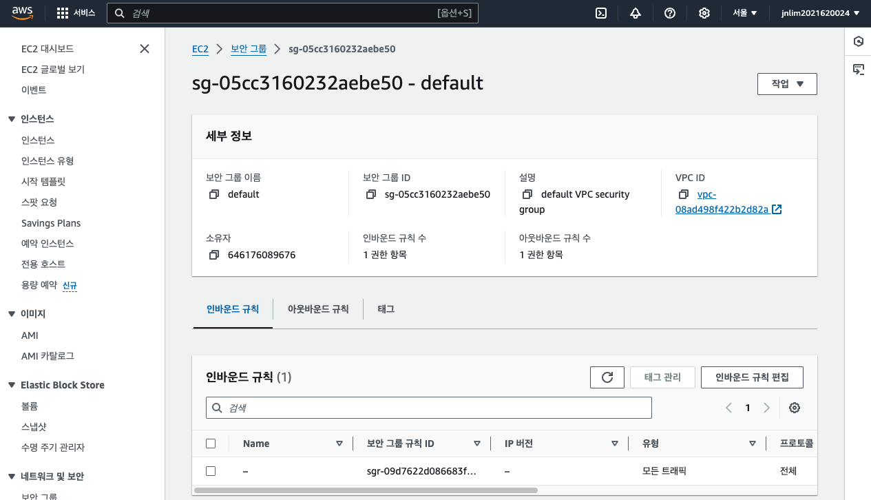 보안 그룹에 표시된 보안 그룹 ID를 클릭한다.