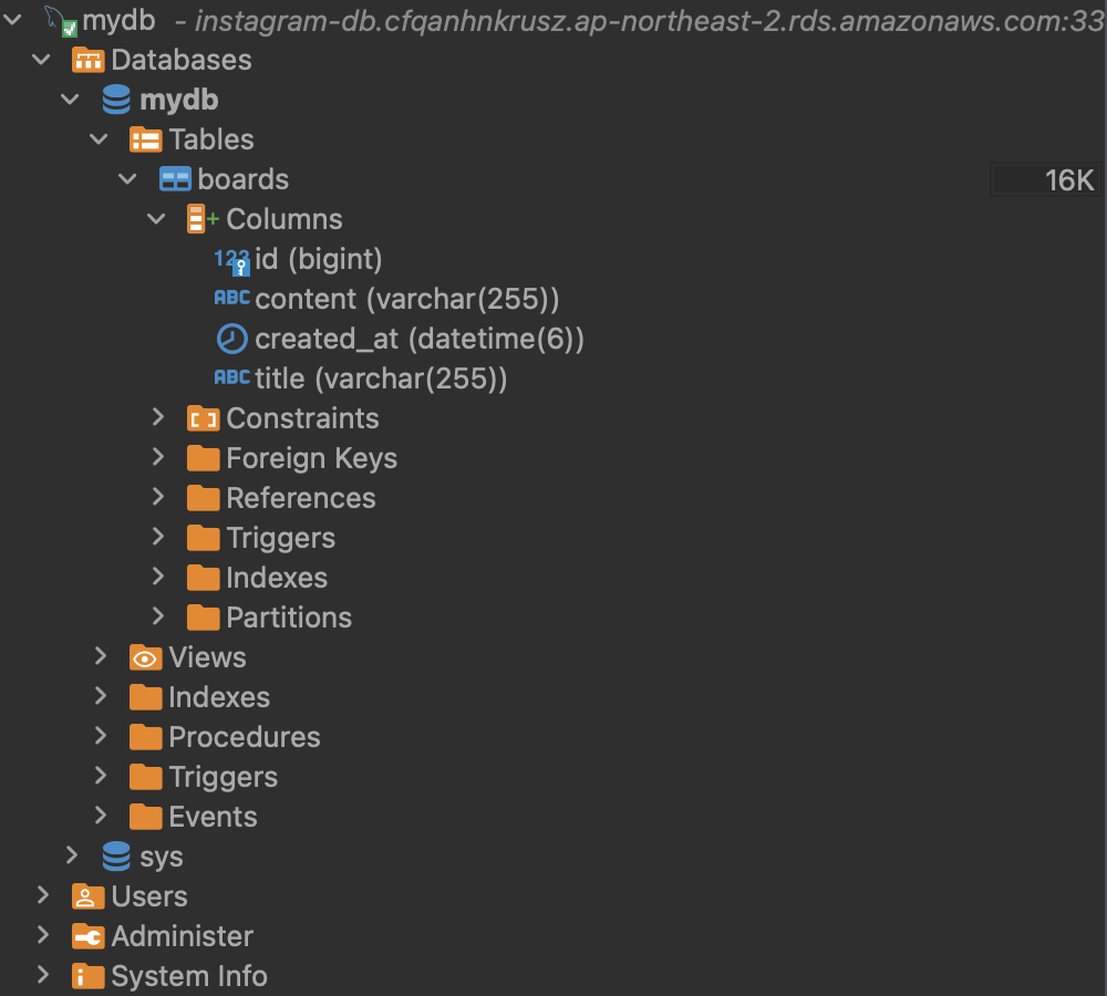 엔티티가 RDS에 정상적으로 반영되었는지 확인해보자.