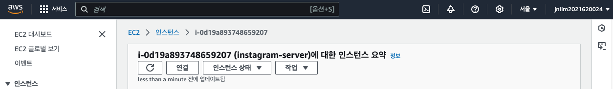 생성한 EC2에 접속하기 위해 연결을 클릭한다.
