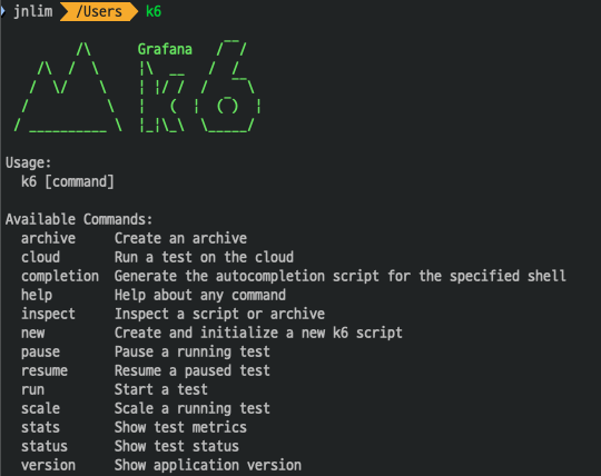 # k6가 정상 설치 되었는지 확인하는 명령어