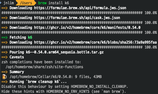 Mac 사용 유저 k6 설치 참고