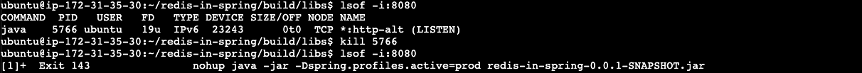 nohup java -jar -Dspring.profiles.active=prod redis-in-spring-0.0.1-SNAPSHOT.jar &