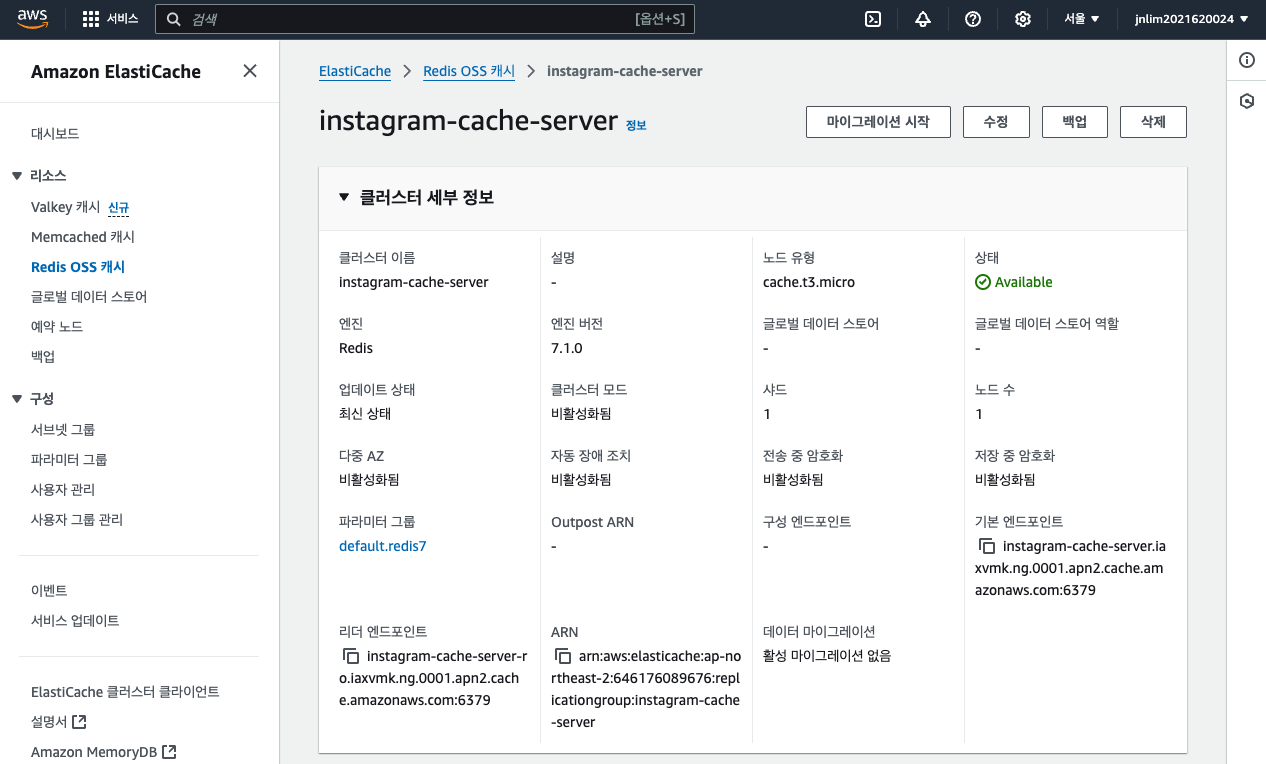 | [Redis] AWS ElasticCache를 활용하자! (1) (1) | 2024.10.26 |